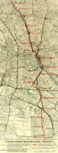 Die Linienführung der Bahn ist in großen Zügen nach dem Plan der Allgemeinen Elektricitäts-Gesellschaft beibehalten (s. Anlage I), in einzelnen sind folgende einschneidende Abänderungen zugunsten besserer Bahnhofslagen im Zentrumvorgenommen worden.