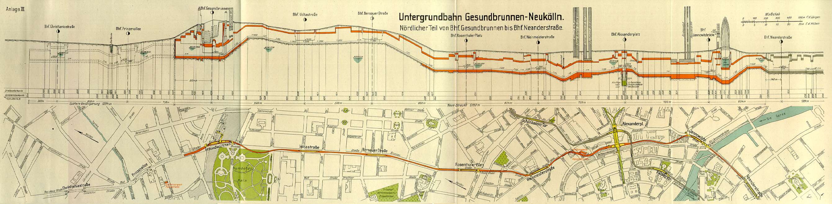 Anlage III Lageplan und Längsschnitt des nörlichen Teiles der GN-Bahn (Gesundbrunnen-Neanderstraße)