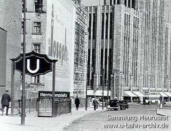 Zum oberen Bahnsteig des U-Bahnhofes Hermannplatz ist heute noch ein direkter Eingang von der Hermannstraße aus vorhanden. Jedoch ist dieser verschlossen und für Fahrgäste nicht nutzbar, so daß diese aus der Hermannstraße einen recht langen Umweg in Kauf nehmen müssen, um die U-Bahn zu erreichen.
