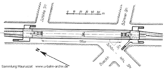 Lageplan des U-Bahnhofs im Eröffnungszustand