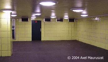 Die Busendstelle ist mittlerweile verschwunden und ebenso der U-Bahnzugang. Im Zwischen- geschoß ist der verschlossene Gang bei genauem Hinsehen an den leicht unterschiedlichen Fliesen und den Lüftungsgittern noch zu erkennen.
